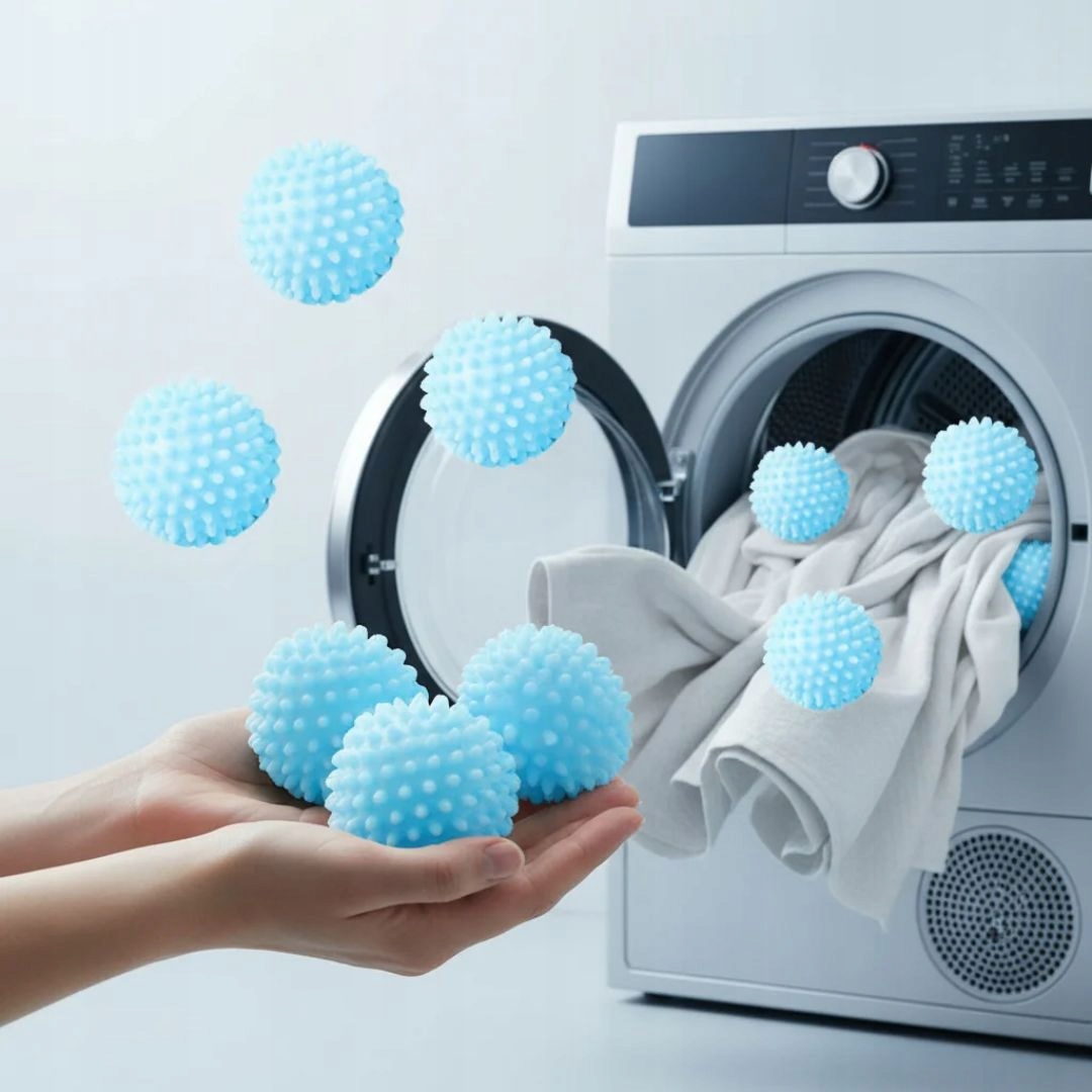 Wystarczy wrzucić kule do bębna razem z mokrym praniem – bez dodatkowych czynności. Produkt jest wielokrotnego użytku, co oznacza realne oszczędności oraz bardziej ekologiczne podejście do codziennego suszenia.