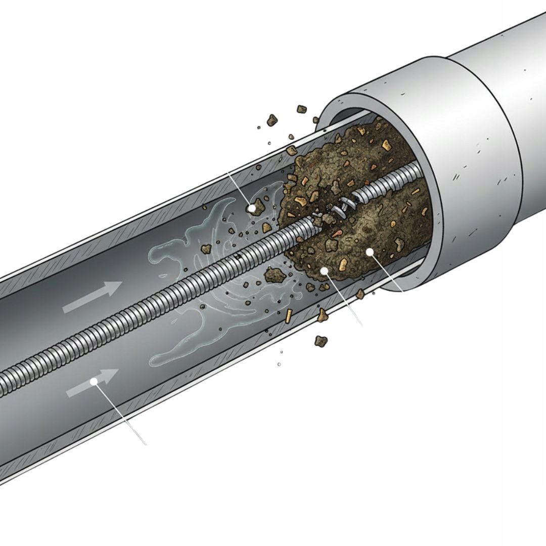 Dzięki temu narzędzie jest trwałe, odporne na korozję oraz przystosowane do pracy w trudnych warunkach instalacji wodno-ściekowych. Sprężynowa konstrukcja pozwala na łatwe prowadzenie spirali w zakrętach rur, zwiększając skuteczność usuwania zatorów.