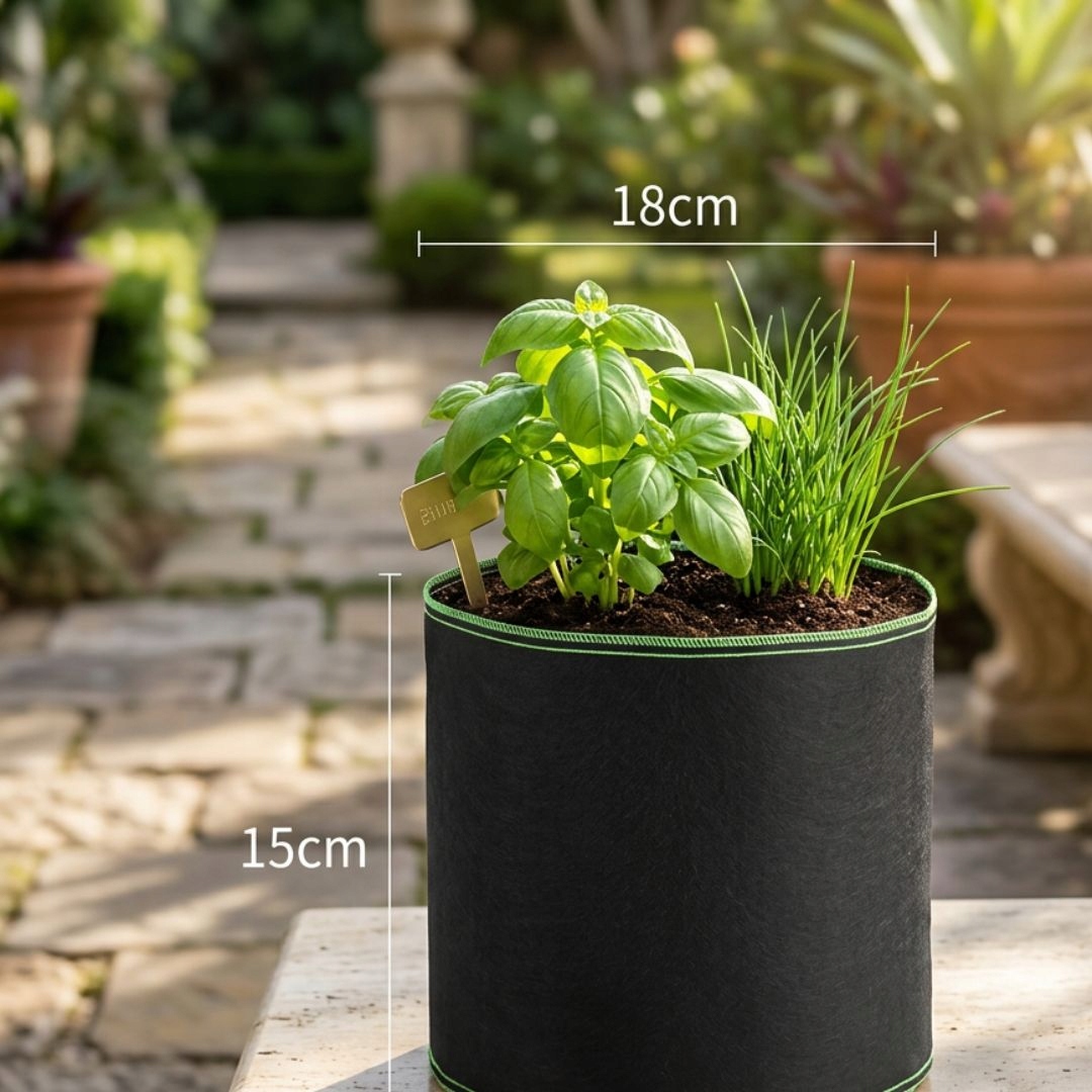 Doniczka wykonana jest z przepuszczalnej włókniny, która zapewnia odpowiednią cyrkulację powietrza oraz odprowadzanie nadmiaru wody. Dzięki temu korzenie roślin rozwijają się zdrowiej i szybciej, bez ryzyka przelania.